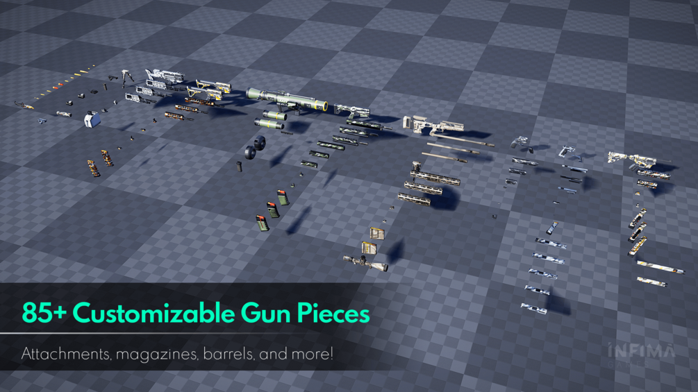 ➡️ 8 Customizable Gun Models - Each gun has a unique set of swappable pieces including barrels, slides, magazines, and more.